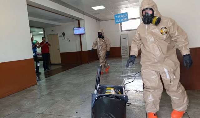 Aydın Kadın Doğum ve Çocuk Hastalıkları Hastanesi'nde kimyasal ve biyolojik tehditlere karşı hazırlık tatbikatı yapıldı.
