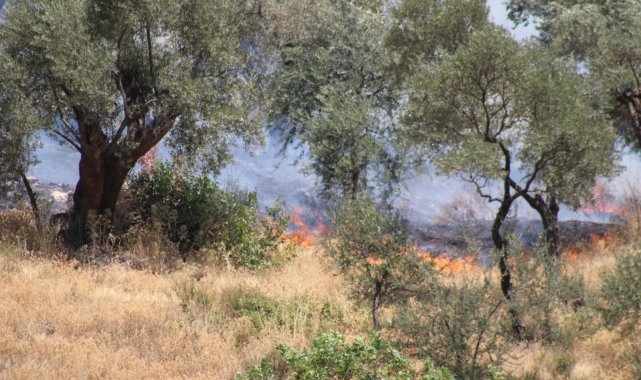 Aydın'ın Efeler ilçesinde zirai alanda başlayan yangın ormana sıçrarken, ekiplerin alevlere karadan ve havadan müdahalesi sürüyor.