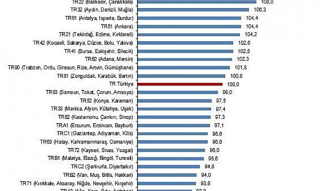 Verilere göre fiyat düzeyi endeksi en yüksek bölge 112,6 ile TR10 (İstanbul) olurken, en düşük bölge ise 91,5 ile TRC3 (Mardin, Batman, Şırnak, Siirt) olarak kayıtlara geçti.