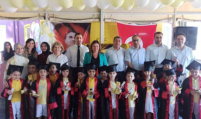 Aydın Devlet Hastanesi Kreş ve Gündüz Bakımevi'nde 2024-2025 eğitim-öğretim yılı sonunda mezuniyet heyecanı yaşandı. Renkli görüntülere sahne olan törende minik öğrenciler kep atarak mezuniyet belgelerini aldı.
