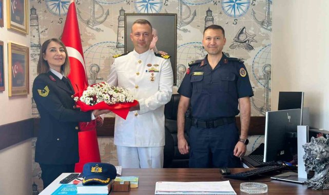 Aydın İl Jandarma Komutanlığı, kuruluş yıldönümü kapsamında Kuşadası Sahil Güvenlik Karakol Komutanlığı'nı ziyaret ederek çiçek takdim etti.