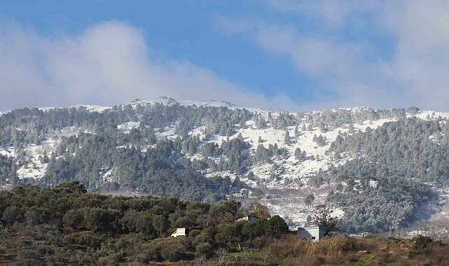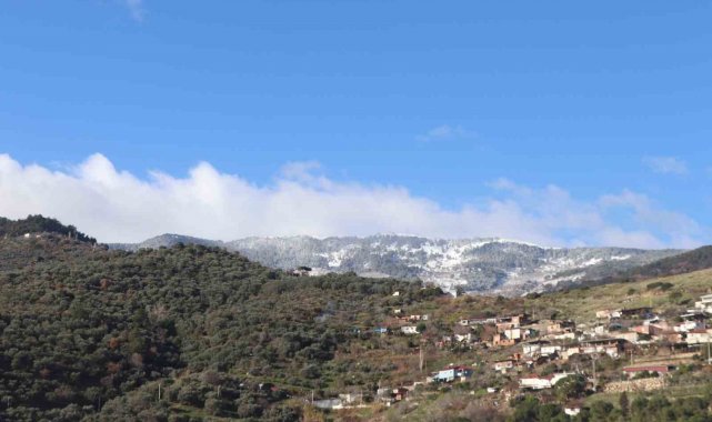 Aydın'da dün etkili olan sağanak yağışlı hava ile birlikte yüksek kesimlerde kar yağışı dağları beyaza bürüdü.