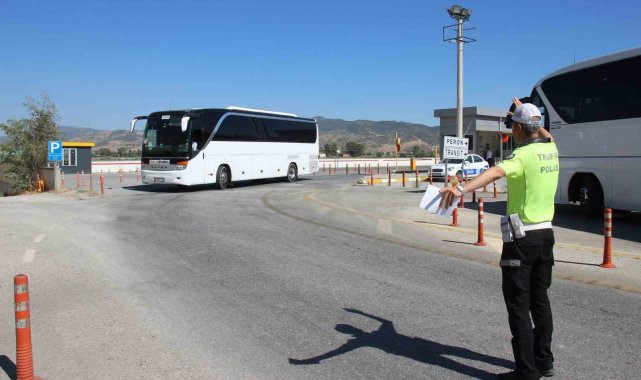 Ramazan Bayramı'na sayılı günler kala vatandaşların bayramı huzurlu ve güvenli bir ortam içerisinde geçirmeleri için Aydın Şehirlerarası Otobüs Terminali'nde denetim gerçekleştiren trafik ekipleri, otobüslerde emniyet kemeri denetimi gerçekleştirirken, yolcuları da emniyet kemerinin önemini konusunda bilgilendirdi.
