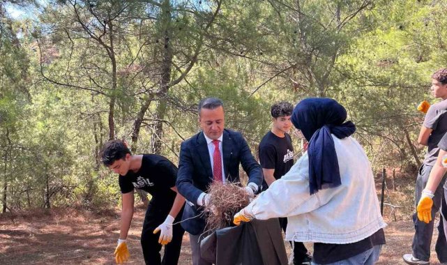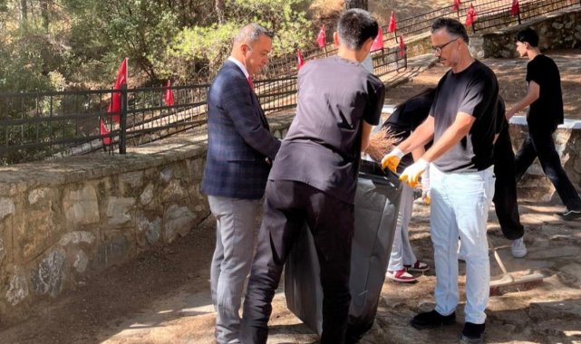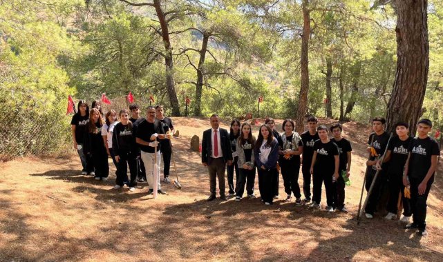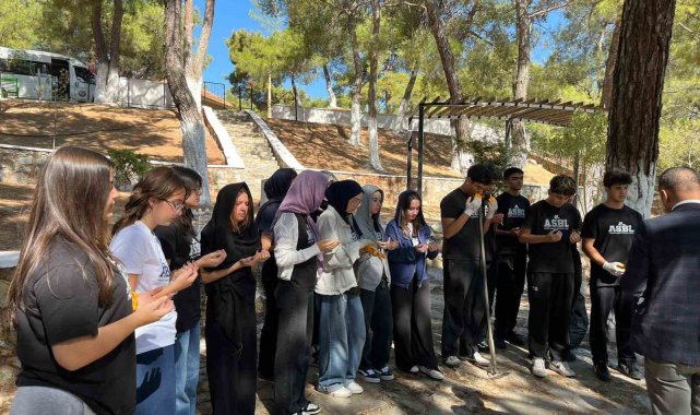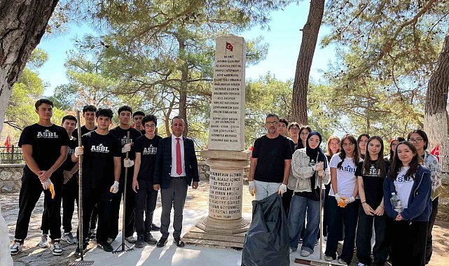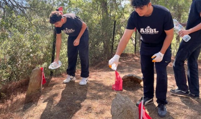 Gözpınar Şehitliği'ni ziyaret eden Aydın Sosyal Bilimler Lisesi öğrencileri, hem dua etti, hem de şehitlikte çevre temizliği yaparak örnek oldu.
