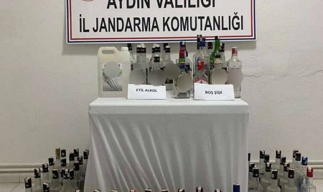 Aydın İl Jandarma Komutanlığı KOM Şube Müdürlüğü ve Kuşadası İlçe Jandarma Komutanlığı ekiplerince kaçak ve sahte alkol imalatı ile satışına yönelik koordineli çalışmalarına aralıksız devam ediyor. Edinilen bilgiye göre ekipler, Güzelçamlı Mahallesi'ndeki bir işyerinde sahte alkol imal edildiğini tespit etti. Baskın için düğmeye basan ekipler, E.H. isimli şüpheliye ait işyerine operasyon düzenledi. Yapılan baskında şüpheli E.H. kıskıvrak yakalanırken, işyerinde yapılan aramada 1 adet 100 cl rakı, 5 adet 70 cl rakı, 1 adet 35 cl rakı, 1 adet 100 cl vodka, 144 adet çeşitli marka ve ebatlarda kullanılmış boş alkol şişesi ve 1 adet kullanıma hazır yaklaşık 5 litre etil alkol ele geçirildi. Gözaltına alınan şüpheli hakkında adli işlem başlatıldı.