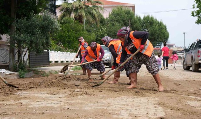 Aydın'ın Kuyucak ilçesinde etkili olan sağanak yağışın ilçe genelinde hasara yol açmasının ardından Kuyucak Belediyesi, yaraları sarmak için seferber oldu.