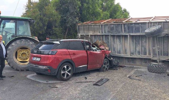 Aydın'ın Söke ilçesinde traktör ile otomobilin çarpışması sonucu meydan...