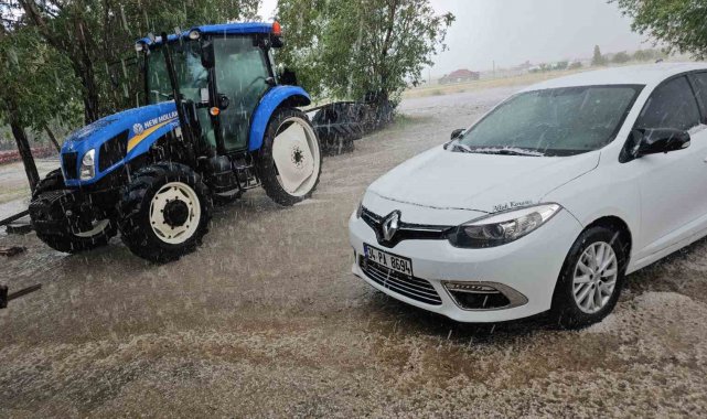 Aydınlar beldesinde yağmur ve dolu yağışı