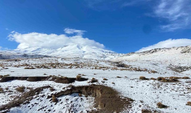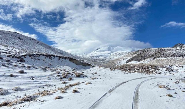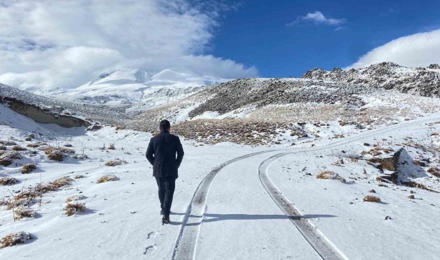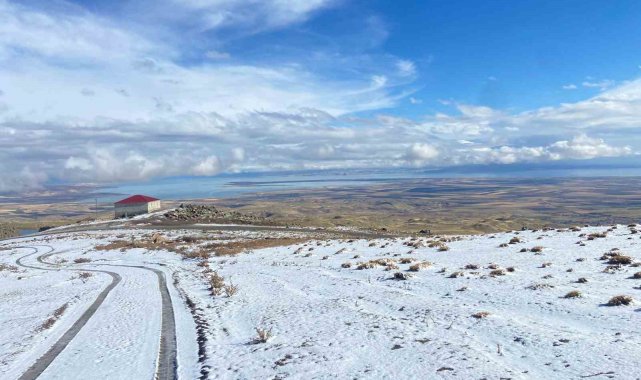 Bitlis'in Adilcevaz ilçesine bağlı Aydınlar beldesinin yüksek mahalleleri yağan karla beyaza büründü.