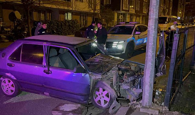 Aydınlatma direğine çarpan alkollü sürücü hurdaya dönen araçtan yara almadan çıktı