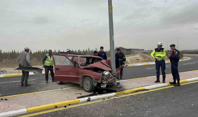Aydınlatma direğine çarpan otomobil hurdaya döndü: 1'i ağır 2 yaralı