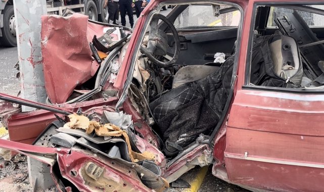 Aydınlatma direğine çarpan otomobil hurdaya döndü: 1 ölü, 1 yaralı