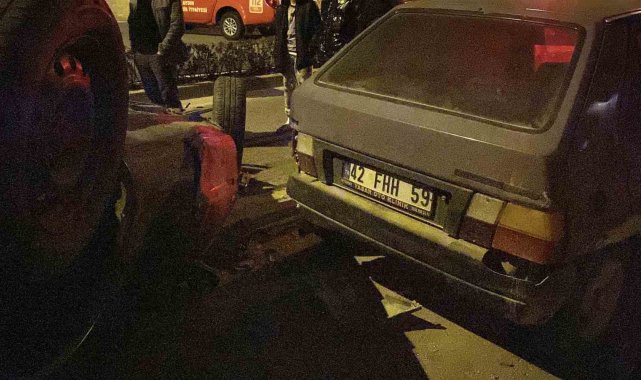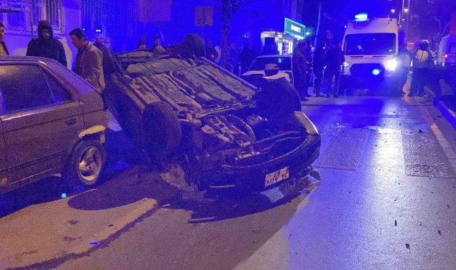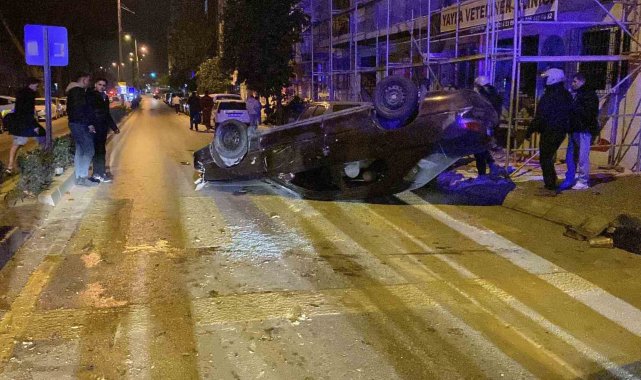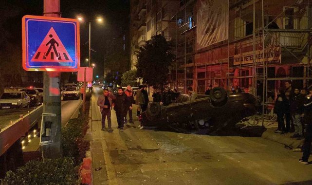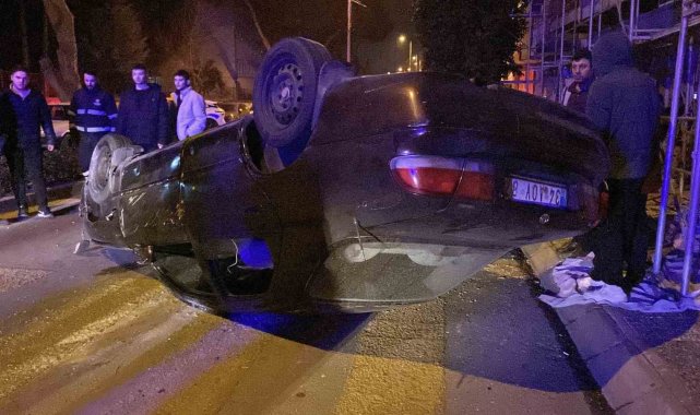 Aydınlatma direğine çarpan otomobil takla attı: 4 yaralı