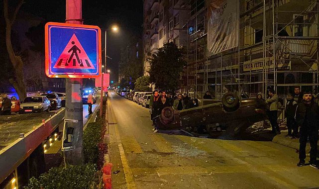 Aydın'ın Efeler ilçesinde sürücüsünün direksiyon hakimiyetini kaybettiği otomobil, orta refüjdeki aydınlatma direğine çarparak takla attı. Park halindeki bir araca çarparak duran otomobilde bulunan 4 kişi yaralandı.