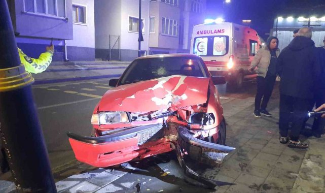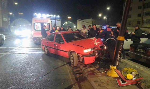 Aydınlatma direğine çarpan otomobilin sürücüsü yaralandı