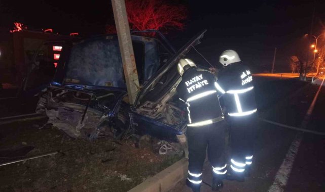 Hatay'ın Reyhanlı ilçesinde otomobille çarpışan Tofaş marka otomobil, aydınlatma direğine çarparak ikiye ayrıldı. İki aracın karıştığı kazada 1'i ağır 2 kişi yaralandı.
