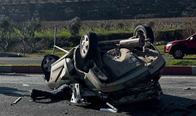Aydınlatma direğine çarpıp takla atan otomobil hurdaya döndü; 2 yaralı