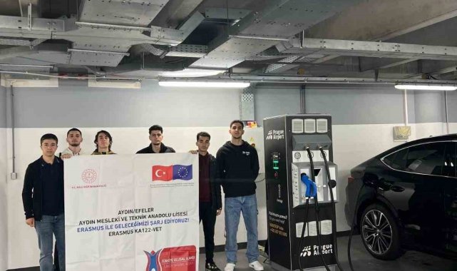 Aydın Mesleki ve Teknik Anadolu Lisesi'nin 2024 teklif çağrısında kabul edilen "Erasmus ile Geleceğimizi Şarj Ediyoruz" projesi kapsamında öğrenciler, Çekya'da elektrikli araç şarj istasyonları üzerine uygulamalı staj yaparak geleceğin mesleklerinde önemli deneyimler kazandı.