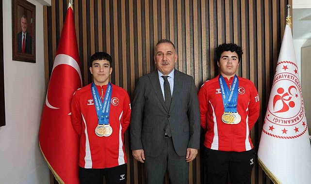 Aydın Gençlik ve Spor İl Müdürlüğü Spor Kulübü sporcuları, Avrupa şampiyonalarında elde ettikleri derecelerle büyük bir başarıya imza atarken, şampiyon sporcular Gençlik ve Spor İl Müdürü Serhat Yığmatepe'yi makamında ziyaret etti.