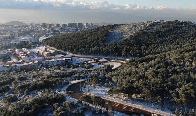 İstanbul'da dün sabah saatlerinden bazı bölgelerde aralıklarla devam eden kar yağışı, özellikle yüksek kesimlerde beyaz örtü oluşturdu. Özellikle yüksek kesimlerde etkili olan kar yağışıyla birlikte Aydos ve çevresindeki ağaçlar ve yollar beyaza büründü. Pendik ve Kartal'da da aralıklarla etkisini sürdüren karın ardından sabahın ilk ışıklarıyla havadan görüntülenen Aydos'un tamamının beyaz örtüyle kaplandığı görülürken, ortaya çıkan kartpostallık manzaralar ise görenleri mest etti.