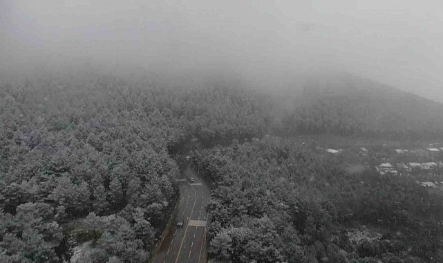 İstanbul'da beklenen kar yağışı sabah saatlerinden itibaren etkisini göstermeye devam ediyor. Kentin bazı bölgelerinde aralıklarla devam eden kar yağışı, özellikle yüksek kesimlerde beyaz örtü oluşturmaya başladı. Kent genelinde özellikle yüksek kesimlerde etkisini sürdüren kar yağışıyla birlikte Aydos ve çevresindeki ağaçlar ve yollar beyaza büründü. Bölgede kaydedilen görüntülerde kar yağışının aralıksız devam ettiği görülürken, dronla görüntülenen Aydos'un tamamının beyaz örtüyle kaplandığı dikkat çekti. Özellikle ormanlık alanda yoğunluğunu artıran karla birlikte kartpostallık manzaralar ortaya çıktı.