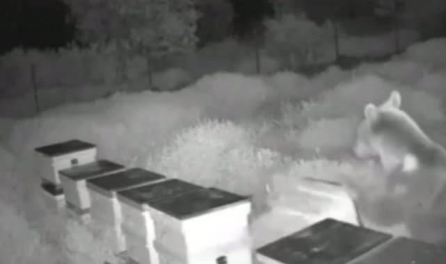 Düzce'nin Yığılca ilçesinde ikinci ayı vakası yaşandı. Ayılar arıların bal kovanlarını parçalayarak balları yedi. O anlar güvenlik kamerasına anbean yansıdı.