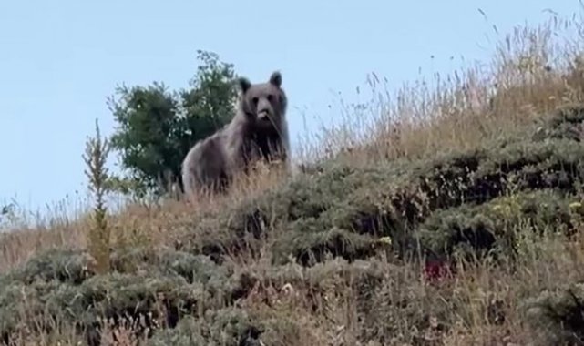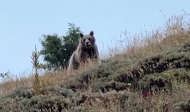 Erzurum'un Aziziye ilçesi Aşağı Akyazı köyünde hayvanlarını otlatan Soner Kaplan, bir anda ayı ile karşılaştı. Çoban, hayretinin ardından bir yandan elindeki cep telefonu ile ayıyı görüntülerken bir yandan da bağırarak onu korkutup kaçırmaya çalıştı. Ayı bir süre çobana baktıktan sonra kaçarak izini kaybettirdi.