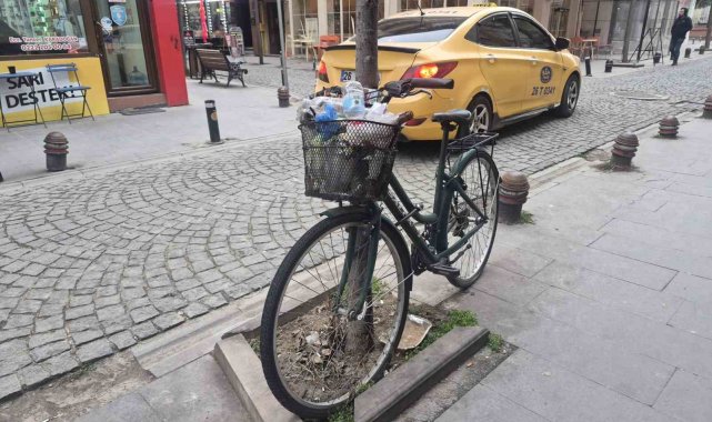 Kentin en hareketli noktalarından biri olan Odunpazarı ilçesi İstiklal Mahallesi'nde, yol kenarındaki bir ağaca kilitlenmiş halde aylardır sahipsiz duran bisiklet, çevre kirliliğinin adeta simgesi haline geldi. Çevredeki çöp kutularına rağmen bisiklet sepetinin atıklarla doldurulması "Bu kadarı da olmaz" dedirtti.
