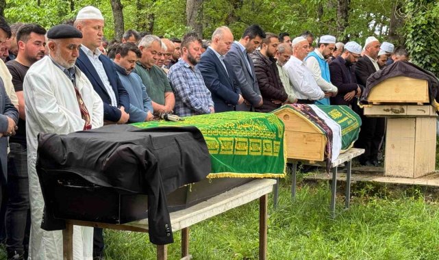Mahalle camiindeki öğle namazının müteakiben kılınan cenaze namazının ardından karı, koca ve oğlu köy mezarlığındaki aile kabristanına defnedildi.