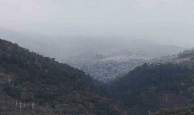 Aydın'ın yüksek kesimlerinde etkili olan soğuk hava ile birlikte yüksek kesimler beyaza bürünürken, bahar ve kış mevsimi aynı fotoğraf karesine yansıdı.