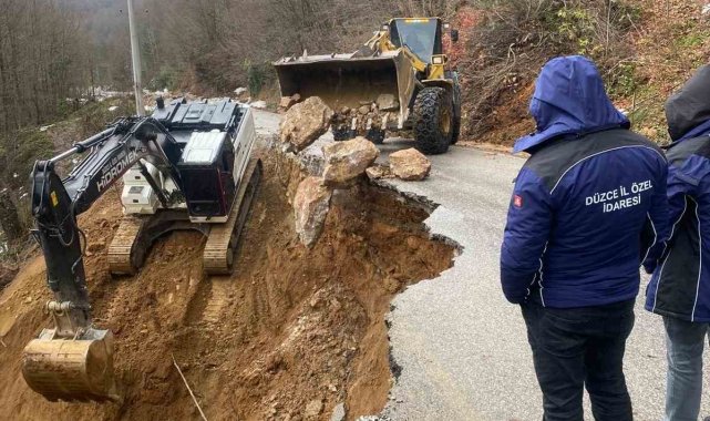 Düzce merkeze bağlı Fındıklıaksu köyünde geçtiğimiz salı günü meydana gelen olayda, tepeden yola toprak ve çamur yığını akarak heyelan oluştu. Ulaşımın kapandığı yolun açılması için Düzce İl Özel İdaresi ekipleri çalışmalarını sürdürürken, dün ise aynı noktada bu kez Düzce şehir merkezi ile köye birbirine bağlayan ana yolda toprak kayması nedeniyle kapandı. Meydana gelen heyelan alanında çalışan İl Özel İdaresi ekipleri bu kez uçuruma kayan yolda çalışma yaparak, köye ulaşımın sağlanması için yoğun mesai harcadılar. Çalışmaların hafta sonuna kadar tamamlanması ve köye giden yolun ulaşıma açılacağı bildirildi.