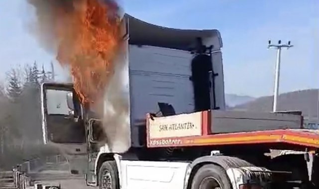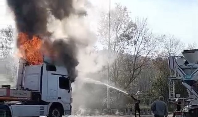 Aynı noktada yarım saat arayla iki kamyon yandı