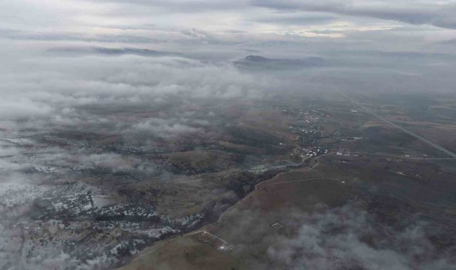Elazığ'da etkili olmaya başlayan soğuk hava, yüksek kesimlerde kendini kar yağışıyla gösterdi. 4 bin yıllık tarihiyle kentin simgelerinden biri olan Harput Mahallesi'nde dün akşam saatlerinde kar yağışı başladı. Yağış henüz bölgeyi tamamen beyaza bürümese de yer yer oluşan beyazlıklar kışın habercisi oldu. Sabah saatlerinde dron ile havadan görüntülenen Harput Mahallesi ve merkeze bağlı Nuralı Köyü ise ortaya sıra dışı manzaralar çıkardı. Aynı rakımda bulunmasına rağmen bazı bölgelerin karla kaplandığı, bazı alanlarda ise karın hiç tutmadığı görüldü. Dron görüntülerinde, birkaç yüz metre arayla kar, sis ve karsız alanların aynı karede buluşması dikkat çekti.
