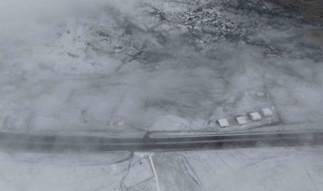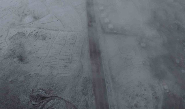 Elazığ'ın 4 bin yıllık Harput Mahallesi'nde kar yağışı başladı. Harput'a bağlı Nuralı köyünde dron ile kaydedilen görüntülerde, aynı rakımda hem karla kaplı alanlar, hem kar yağmayan bölgeler hem de yoğun sis dikkat çekti.