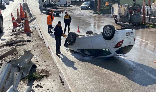 Aynı yerde 5 saat arayla ikinci kaza: Otomobil yan yola düşüp ters döndü, 2 kişi yaralandı