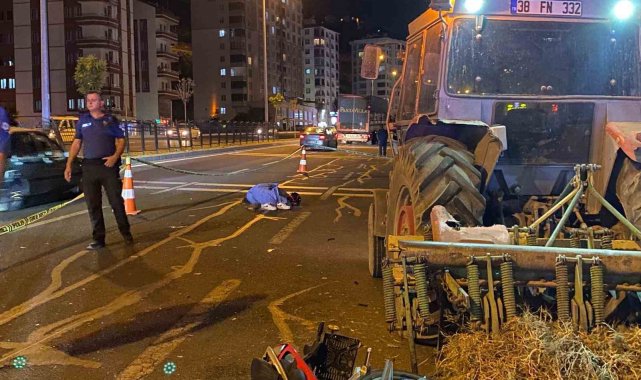 Edinilen bilgiye göre, ilçeye bağlı Tavlusun Mahallesi Gaffar Okan Bulvarı'nda yolun sağından ilerleyen Y.K. yönetimindeki 38 FN 332 plakalı traktöre, H.Y. yönetimindeki 38 ANY 492 plakalı motosiklet arkadan çarptı. Çarpmanın etkisiyle H.Y. yola savrulurken, ihbar üzerine bölgeye polis ve sağlık ekipleri sevk edildi. Polis ekipleri çevrede güvenlik önlemi alarak yolun bir kısmını trafiğe kapatırken, sağlık ekipleri yaptıkları kontrolde motosiklet sürücüsünün hayatını kaybettiğini belirledi. Yapılan incelemenin ardından H.Y.'nin cansız bedeni hastane morguna kaldırıldı. Kaza öncesine ait görüntüler ise güvenlik kameralarına yansıdı.