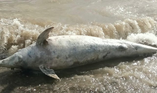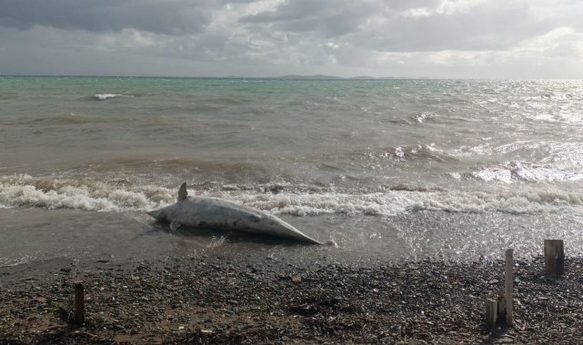 Çanakkale'nin Ayvacık ilçesinde sahil şeridinde ölü yunus balığı vurdu.