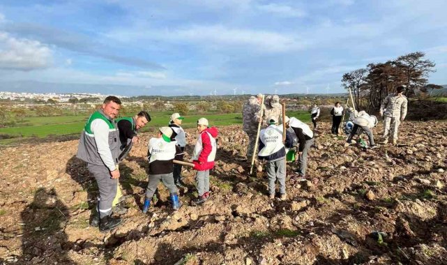Çanakkale'nin Ayvacık ilçesinde oluşturulan ağaçlandırma sahasında 1500 adet fidan ile toprakla buluştu.