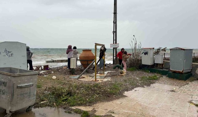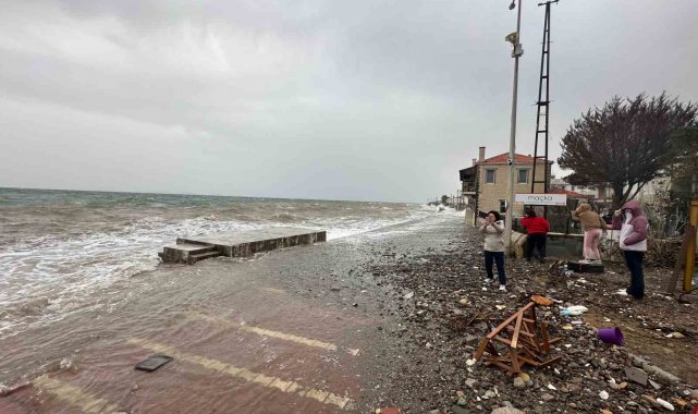 Çanakkale'nin Ayvacık ilçesinde etkili olan fırtına nedeniyle dalgalar adeta denizle karayı birleştirdi.