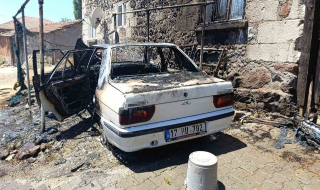 Çanakkale'nin Ayvacık ilçesinde otomobil yandı. Yangın sırasında otomobil önünde park halinde bulunan motosiklette yanarak kullanılamaz hale geldi.