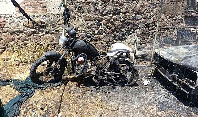 Yangında otomobil ve motosiklette maddi hasar oluştu.