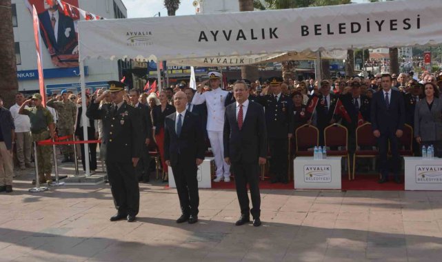 Kurtuluşun yıl dönümü nedeniyle Ayvalık Cumhuriyet Meydanı'nda düzenlenen törene; Ayvalık Kaymakamı Hasan Yaman, Garnizon Komutanı Personel Albay Hüseyin Aydın, Ayvalık Belediye Başkanı Mesut Ergin, daire amirleri, belediye meclis üyeleri, siyasi parti temsilcileri, sivil toplum kuruluşlarının üyeleri, gaziler ve çok sayıda vatandaş katıldı.