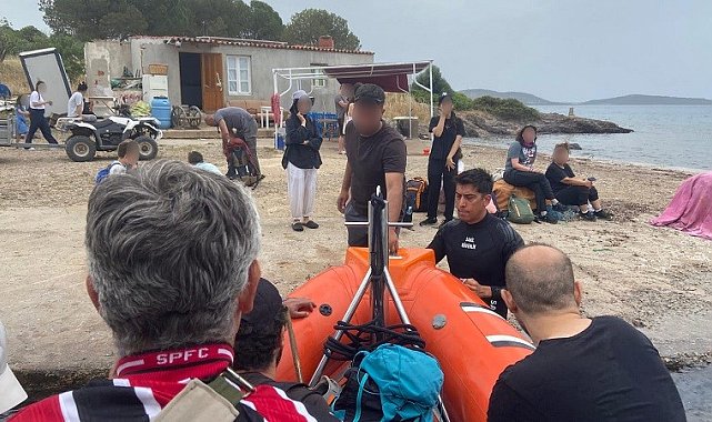 Balıkesir'in Ayvalık ilçesinin 22 adasından biri olan Maden Adası'na denizin ortasındaki sığlıktan yürüyerek geçerek doğa yürüyüşüne çıkan ancak geçiş yolunun olumsuz hava şartları nedeniyle kapanmasından dolayı mahsur kalan vatandaşları Sahil Güvenlik ekipleri kurtardı.