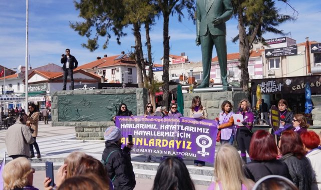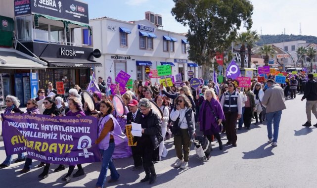 Balıkesir'in Ayvalık ilçesinde; kadınların emeğine, mücadelesine ve topluma kattığı değere dikkat çekmek amacıyla gerçekleştirilen yürüyüş, Öğretmenevi önünde başlayarak Cumhuriyet Meydanı'nda sona erdi.