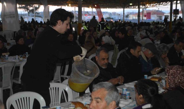 Balıkesir Büyükşehir Belediye Başkan Yardımcısı Emir Arcan'ın öncülüğünde, Ayvalık Belediye Başkan Vekili Dilek Saraçoğlu'nun ev sahipliğinde gerçekleşen iftar programında, akşam ezanının okunmasıyla vatandaşlar hep birlikte oruçlarını açtı.