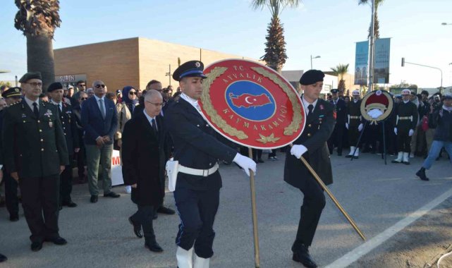 Ayvalık şehitlik anıtında saat 09.00'da 18 Mart Çanakkale Zaferi ve Şehitleri Anma programı kapsamında gerçekleşen törende; Ayvalık Kaymakamı Hasan Yaman, Garnizon Komutanı Personel Albay Hüseyin Aydın, Cumhuriyet Başsavcısı Onur Yavuz, Ayvalık Belediye Başkan Vekili Merih Arslan, Türkiye Muharip Gaziler Derneği Ayvalık Temsilcisi Mehmet Kıranoğlu, Mesut Ergin, belediye meclis üyeleri, siyasi partilerle sivil toplum kuruluşlarının temsilcileri, gaziler ve kalabalık bir vatandaş topluluğu katıldı.