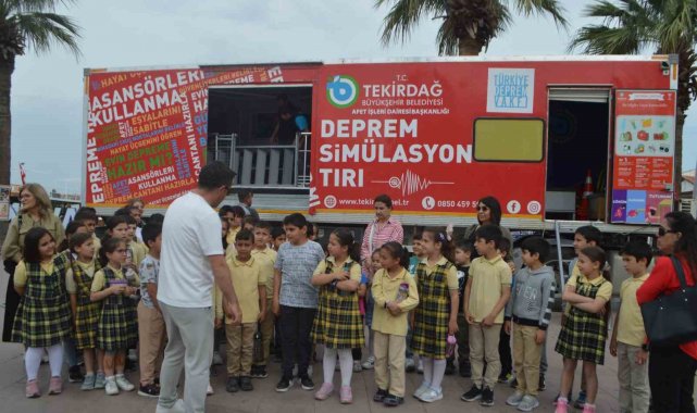 Özellikle çocukların ve gençlerin deprem gerçeğine karşı farkındalığını artırmayı hedefleyen Deprem Simülasyon Tırı, deprem sırasında güvenli alanlara nasıl ulaşılacağı, aile bireylerinin bir araya getirilmesi ve ilk yardım gibi konulara değinildi.