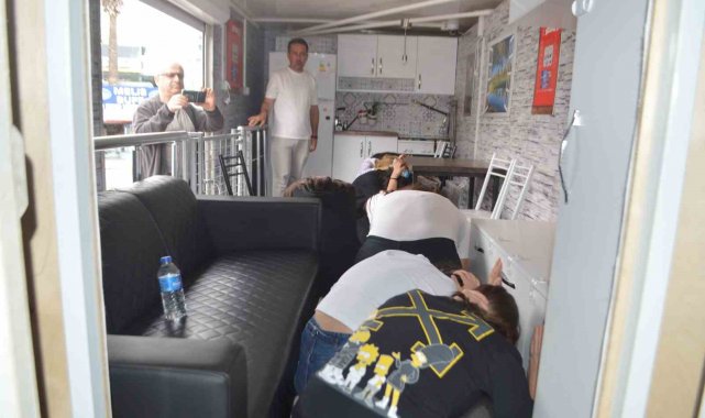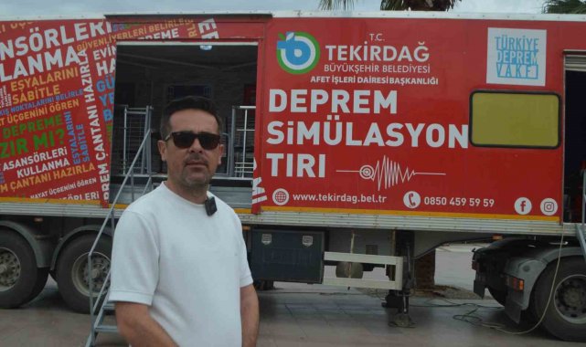 Tır da 6 ile 7 şiddetinde yapay deprem simülasyonu oluşturduklarını kaydeden Ahmet Akyüz, "Aslında bu Kocaeli depreminin birebir simülasyonudur. Biz tabi bunu yüzde 100 değil de, yüzde 80 seviyesinde yaşatıyoruz. Böylelikle öğrenciler ve vatandaşlarımızı depreme karşı bilinçlendirmeye çalışıyoruz" diye konuştu.