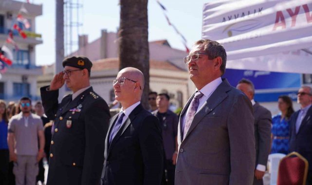 Cumhuriyet Meydanı'nda gerçekleştirilen saygı duruşu, istiklal marşı ve çelenk koyma törenine; Ayvalık Kaymakamı Hasan Yaman, Ayvalık Belediye Başkanı Mesut Ergin, Garnizon Komutanı Personel Albay Hüseyin Aydın, protokol üyeleri, sivil toplum örgütleri, siyasi parti temsilcileri ve çok sayıda vatandaş katıldı.