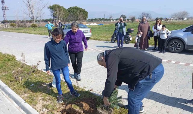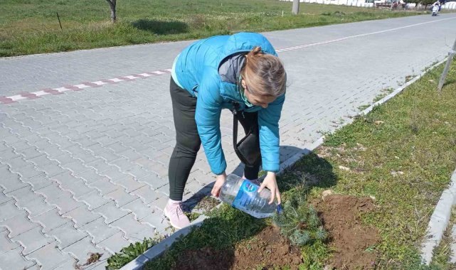 Ayvalık'ta hayvanseverler kuruyan ağaçların yerine yeni fidanlar dikti